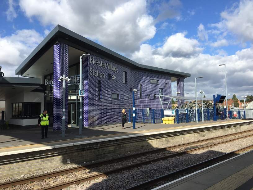 The renamed station opened in October 2015 as part of Chiltern’s new route between Oxford and London Marylebone following a major rebuild. It also serves the adjacent Bicester Village designer retail outlet.